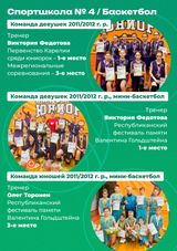 Спортивная школа № 4 готовит баскетболистов, волейболистов и теннисистов. Наши воспитанники – победители и призеры первенств, чемпионатов Карелии и СЗФО.